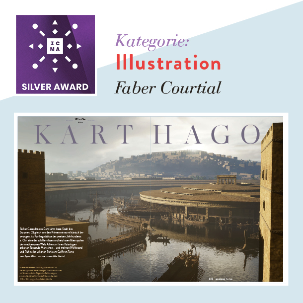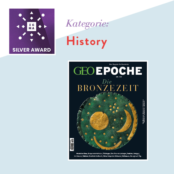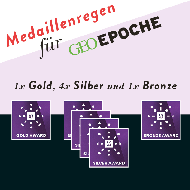 AUSGEZEICHNET: Das Geschichtsmagazin GEOEPOCHE hat beim renommierten International Creative Media Award gleich sechs Medaillen geholt – 1x Gold, 4x Silber, 1x Bronze. Prämiert wurden unter anderem die opulenten Illustrationen und Fotostrecken im Heft.